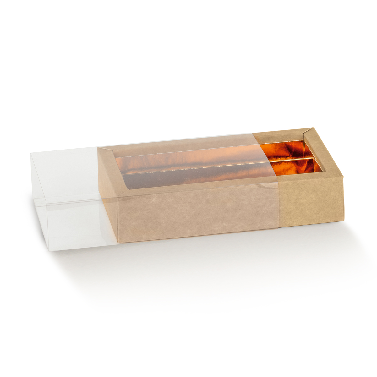Pralinenschachtel mit Schiebedeckel und Einlage braun (145x75x35 mm)