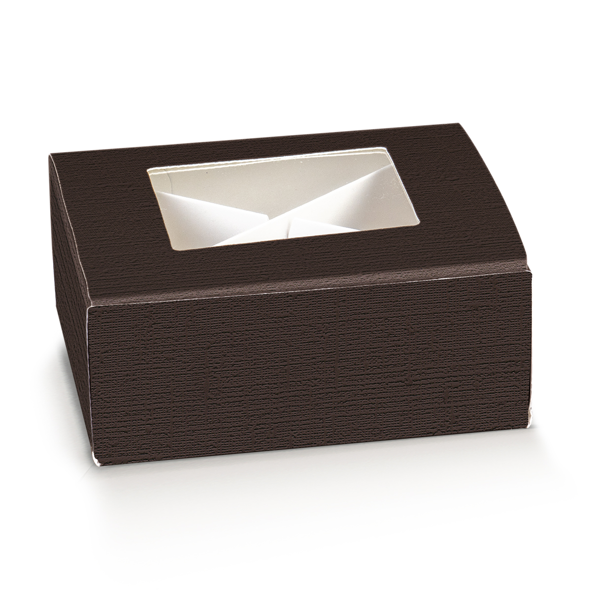 Mini-Kuchenverpackung mit Fenster PRATICA C/FINESTRA braun (100x100x40 mm)
