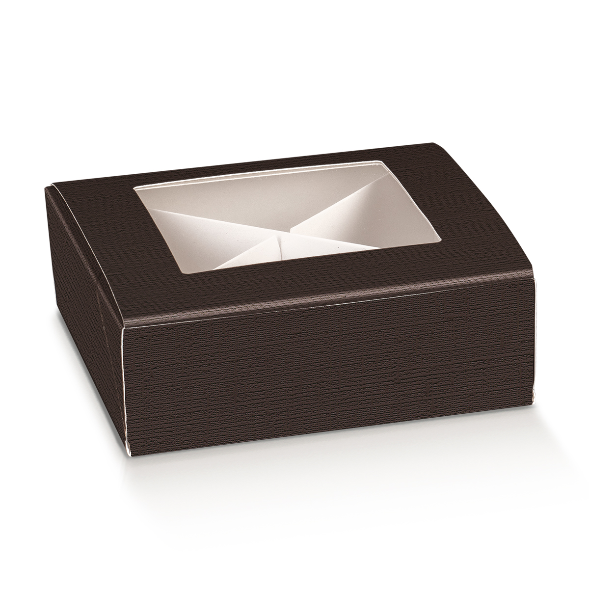 Mini-Kuchenverpackung mit Fenster PRATICA C/FINESTRA braun (120x120x40 mm)