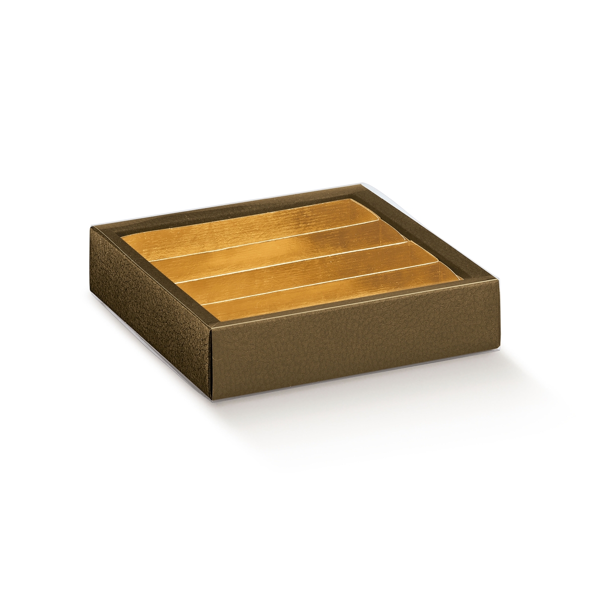 Pralinenschachtel mit Schiebedeckel und Einlage braun (145x145x35 mm/25 mm)