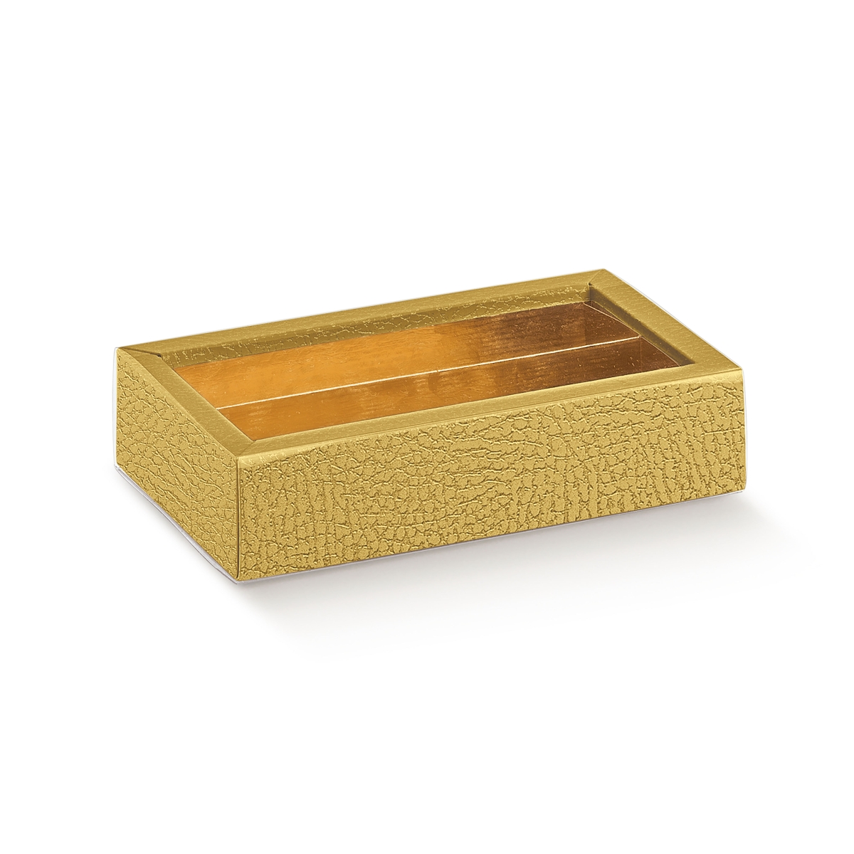 Pralinenschachtel mit Schiebedeckel und Einlage goldfarben (145x75x35/25 mm)