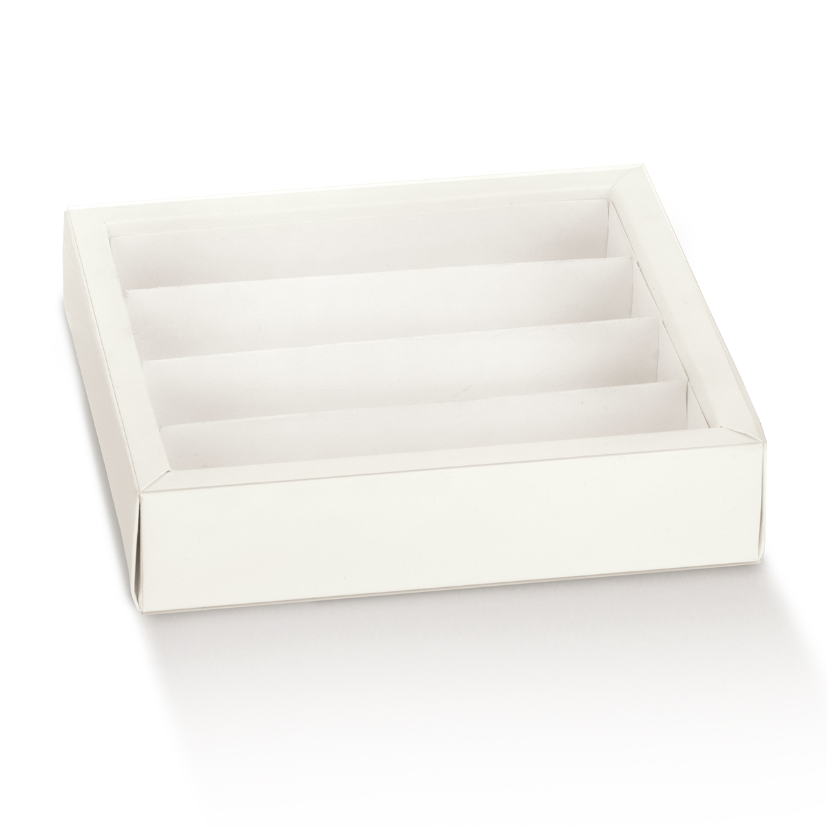 Pralinenschachtel mit Schiebedeckel und Einlage weiß (215x145x35 mm)