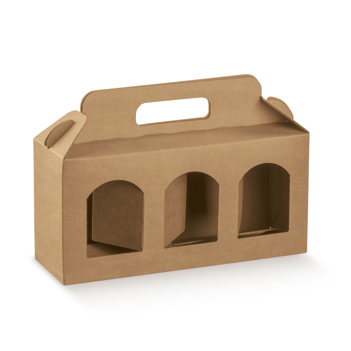 Verpackung für 3 Dosen mit Fenster braun (190x60x120 mm)